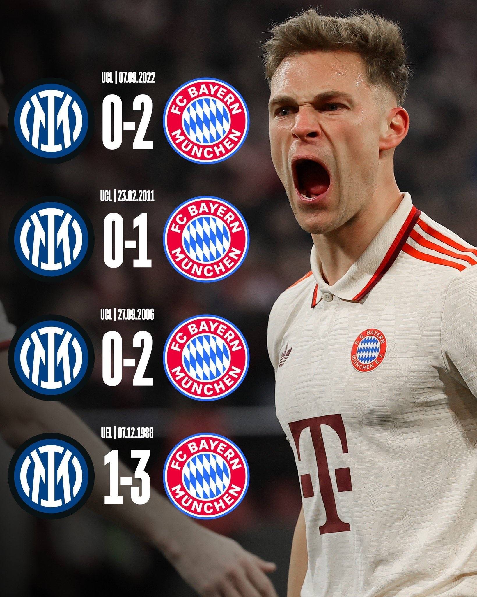 直播吧4月16日讯 欧冠8强次回合,拜仁将客战国米。拜仁官方社媒晒出了球队4次客战国米的战绩,拜仁全部取胜。